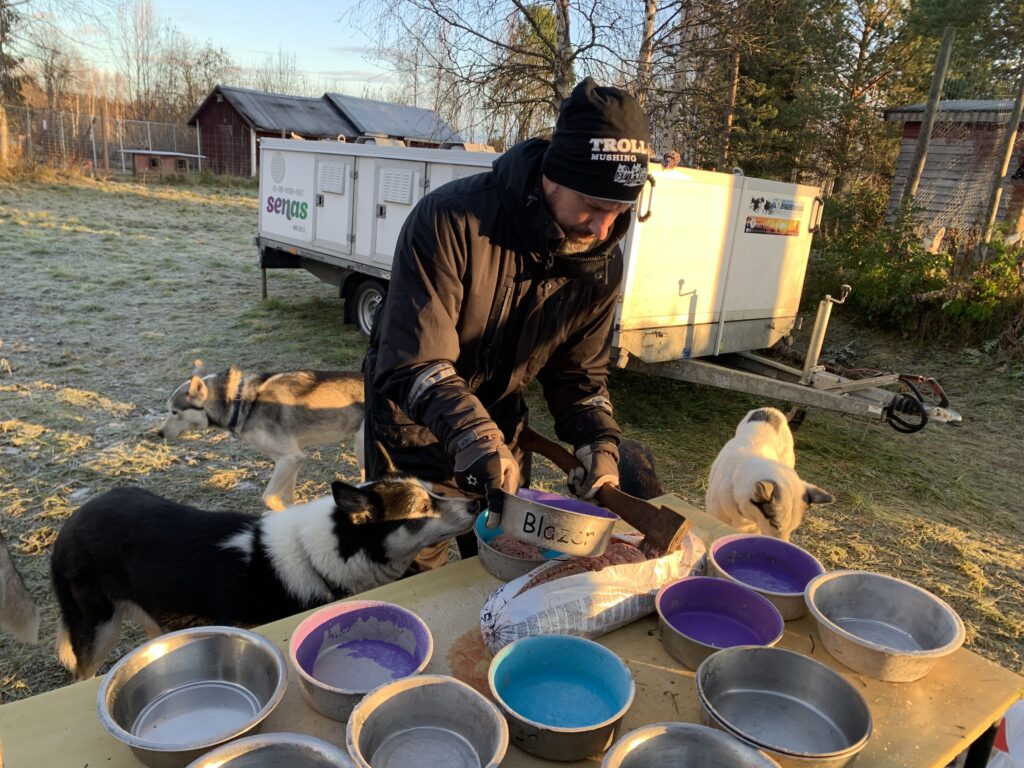 Depuis plus de 20 ans, nous sommes des amateurs de huskies et depuis plus de 10 ans, nous sommes guides de grandes meutes, actuellement composées de 16 huskies et d’un berger hollandais. Au cours de cette période, nous avons essayé différents aliments et acquis une précieuse expérience. Il va sans dire qu’un aliment qui satisfait les 17 chiens en termes de goût et, plus important encore, de digestibilité, a tout pour plaire. Car 17 chiens, cela signifie aussi plus de 17 crottes par jour. Plus un chien assimile bien son alimentation et plus les ingrédients de celle-ci sont de qualité, moins il produit de déchets. Il peut ainsi transformer l’alimentation et son énergie de manière optimale. C’est le cas avec VOM Fleisch, mais aussi avec les croquettes UniQ, quelle que soit la variété que nous leur donnons. Nos chiens sont très actifs et courent environ 3 000 km devant le traîneau ou le chariot pendant la saison (août-avril). Ils ont besoin d’énergie, de graisses et des nutriments contenus dans une nourriture pour chiens de haute qualité pour pouvoir fournir ces performances. Même dans les moments stressants, comme les voyages ou les courses, la viande VOM et les croquettes UniQ convainquent par leur goût, qui donne toujours envie aux chiens de manger.
