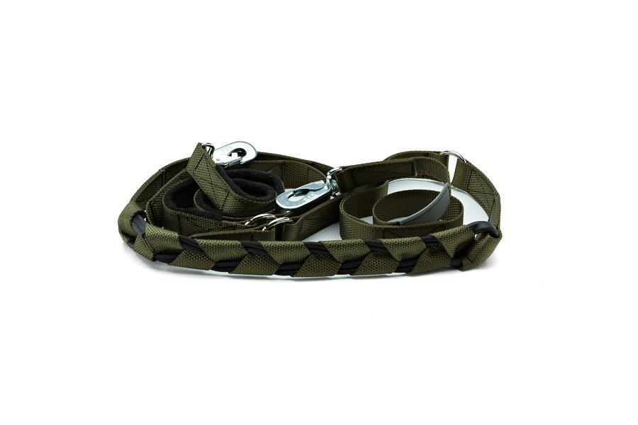Die Leine hat einige Ringe, um den Griff der langen Leine beliebig zu verlängern oder zu verkürzen. Sie kann so auch in verschiedener Länge um den Bauch befestigt werden und ermöglicht so einen angenehmen handfreien Spaziergang. Sie ist aber auch geeignet um am Bauchgurt zu befestigen und so lange Wanderungen zu unternehmen. Oder einfach als robuste Alltagsleine. Die Leine hat einen zusätzlichen Griff, falls Sie den Hund kurz halten möchten.