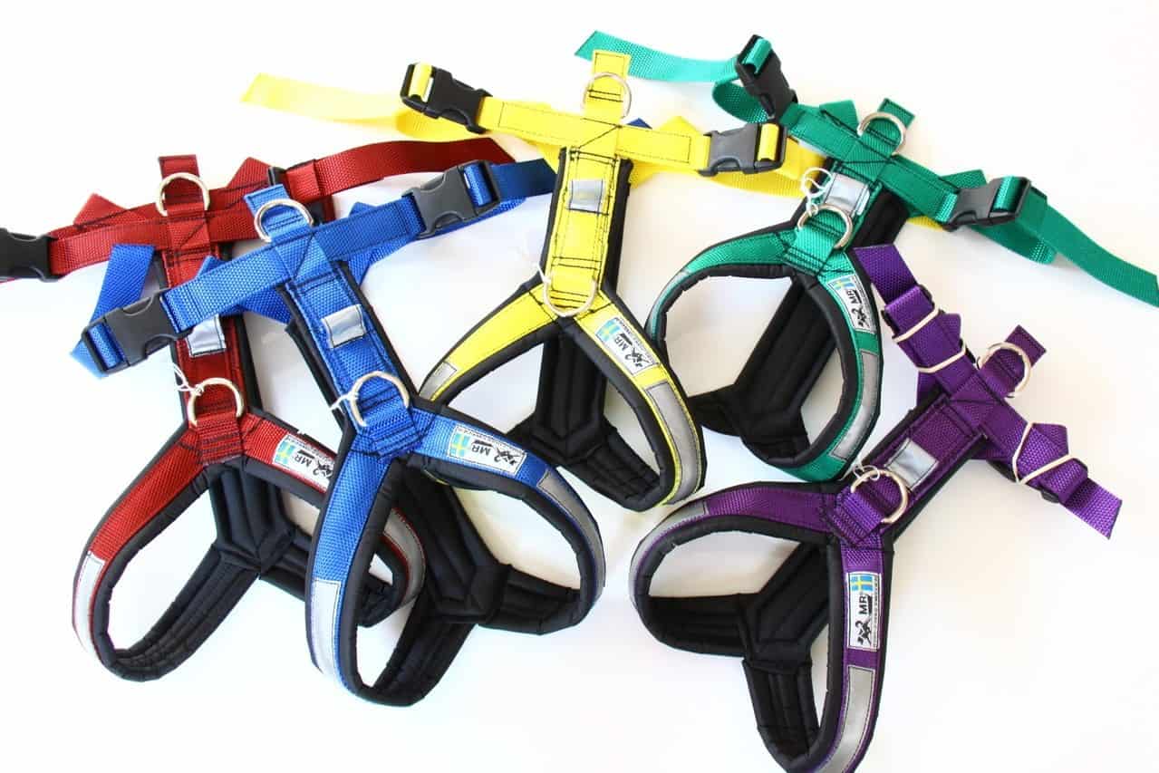 Die MR Koppel Trekkinggeschirre werden von einem kleinen schwedischen Familienunternehmen von Hand gefertigt. Die Geschirre sind extrem stabil, langlebig und gut gepolstert. Sie haben aufgenähte Reflektorenstreifen für eine gute Sichtbarkeit im Dunkeln. Sie gefrieren nicht im Schnee und saugen sich nicht mit Wasser voll, können aber problemlos mehrmals in der Maschine gewaschen werden.