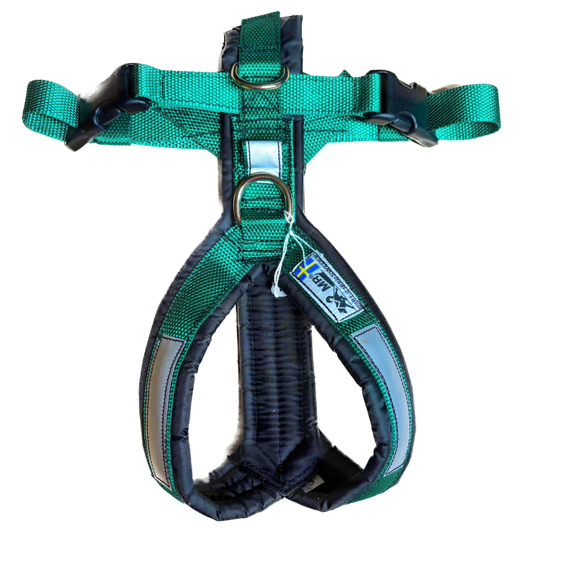 Die MR Koppel Trekkinggeschirre werden von einem kleinen schwedischen Familienunternehmen von Hand gefertigt. Die Geschirre sind extrem stabil, langlebig und gut gepolstert. Sie haben aufgenähte Reflektorenstreifen für eine gute Sichtbarkeit im Dunkeln. Sie gefrieren nicht im Schnee und saugen sich nicht mit Wasser voll, können aber problemlos mehrmals in der Maschine gewaschen werden.